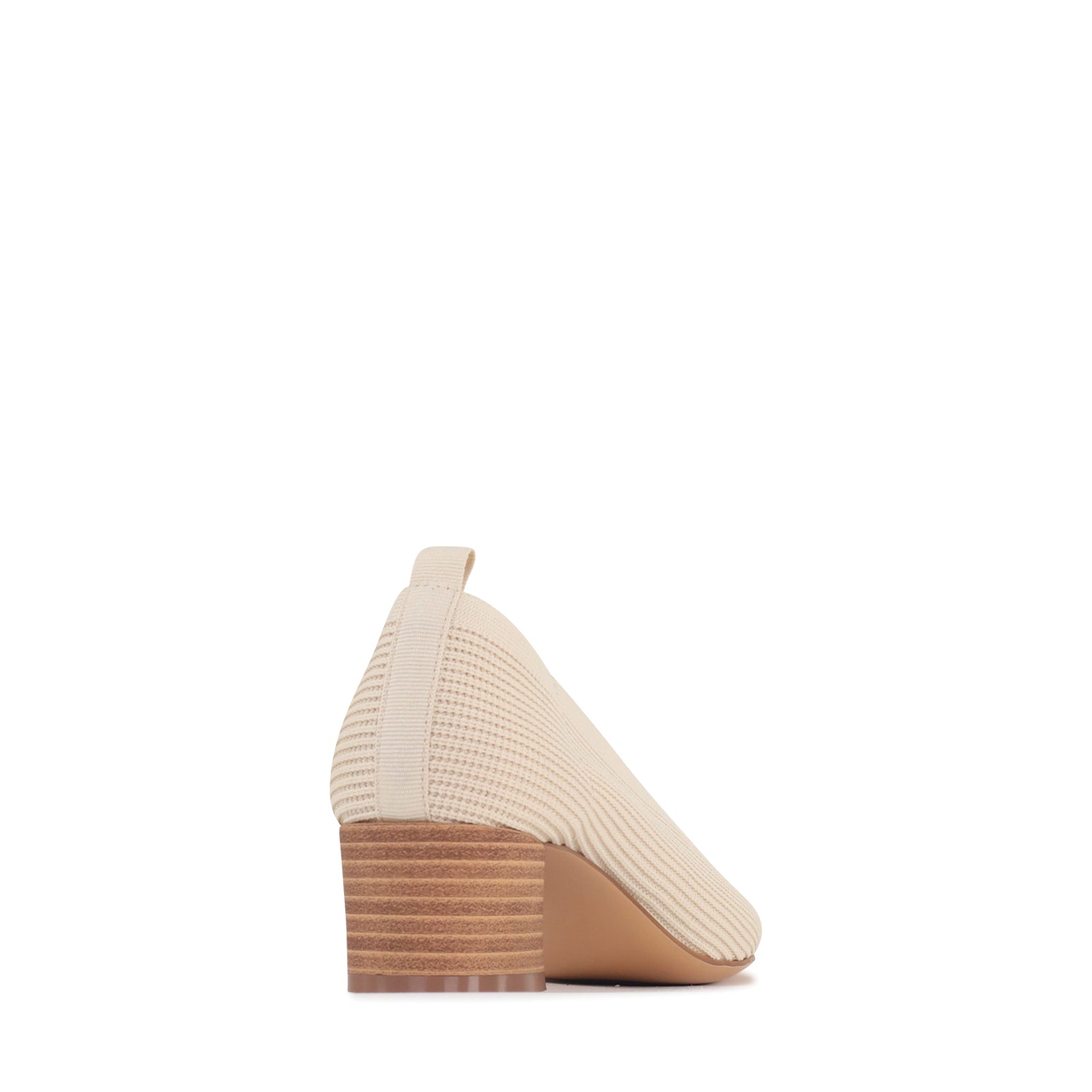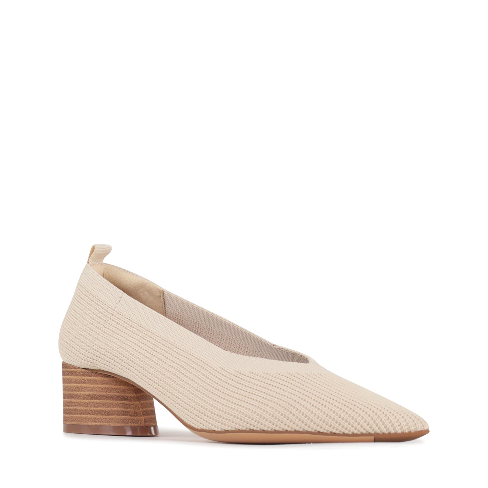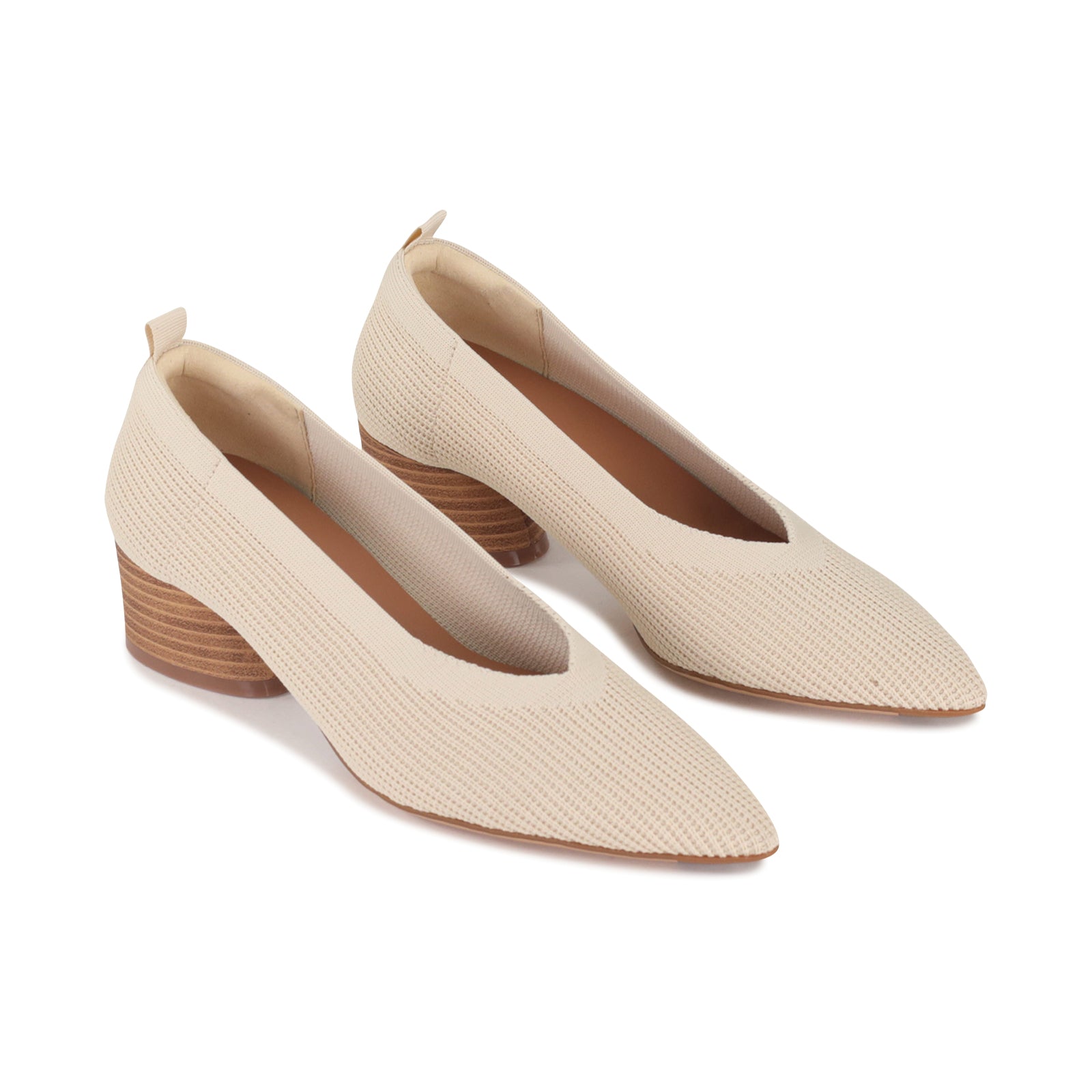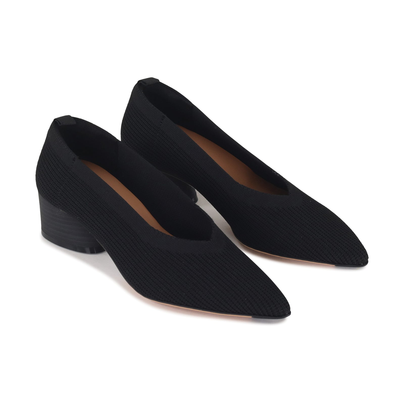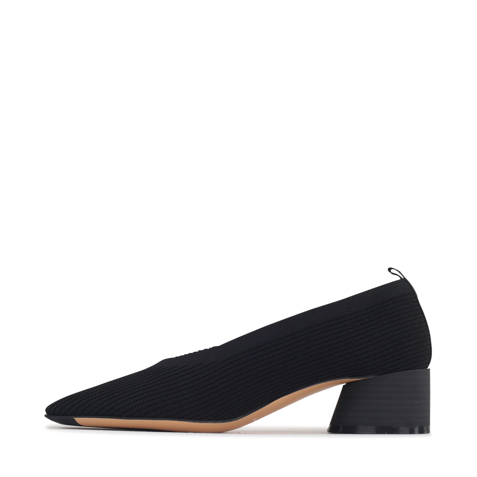 Sleek, minimal, and quietly confident, this modern pump is designed to look sharp and feel wearable all day. The soft flyknit upper hugs the foot for a clean, sock-like fit, while the gently pointed toe keeps the silhouette polished and elongating. A sturdy mid-height block heel adds just enough lift without sacrificing comfort or stability.