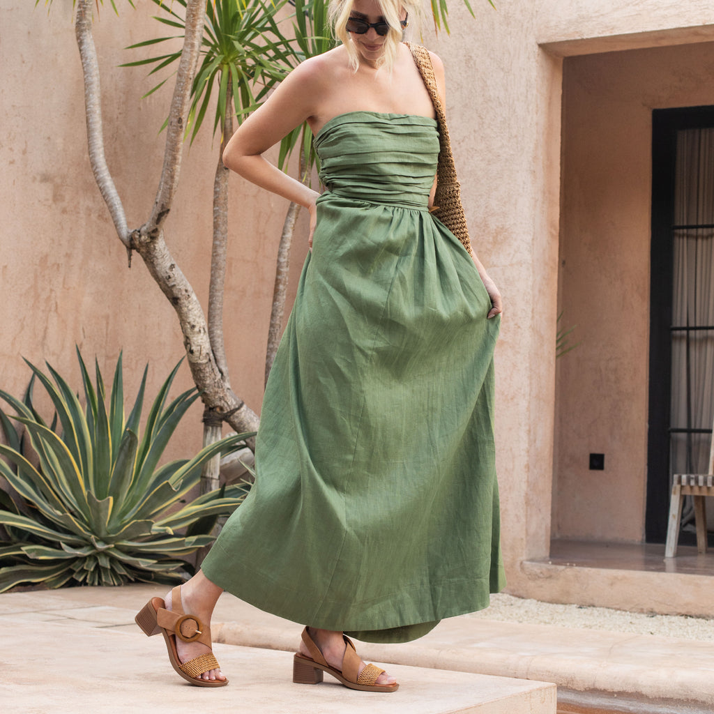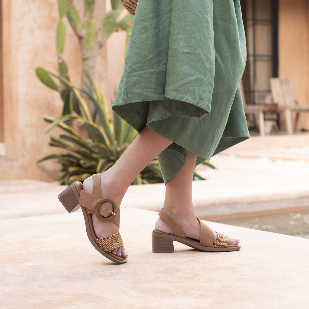 Whether headed to a seaside soirée, weekend brunch, or a sunlit stroll, the Meridine sandal makes a statement. With its striking asymmetrical woven design, natural-wood buckle, and cushioned block heel, this sandal effortlessly blends contemporary flair with laid-back, wearable style which redefines summer-friendly elegance.