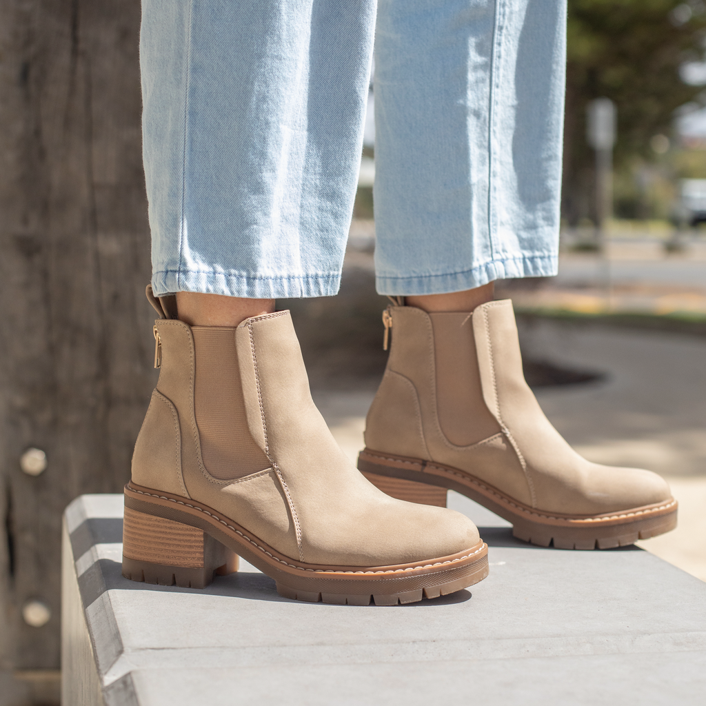 Introducing BITA ankle chelsea boots - the ultimate footwear for easy access and comfortable fit. Featuring a back zip and double fitting elastic, these heeled boots offer both practicality and style. With a chunky outsole, you'll never want to take them off!