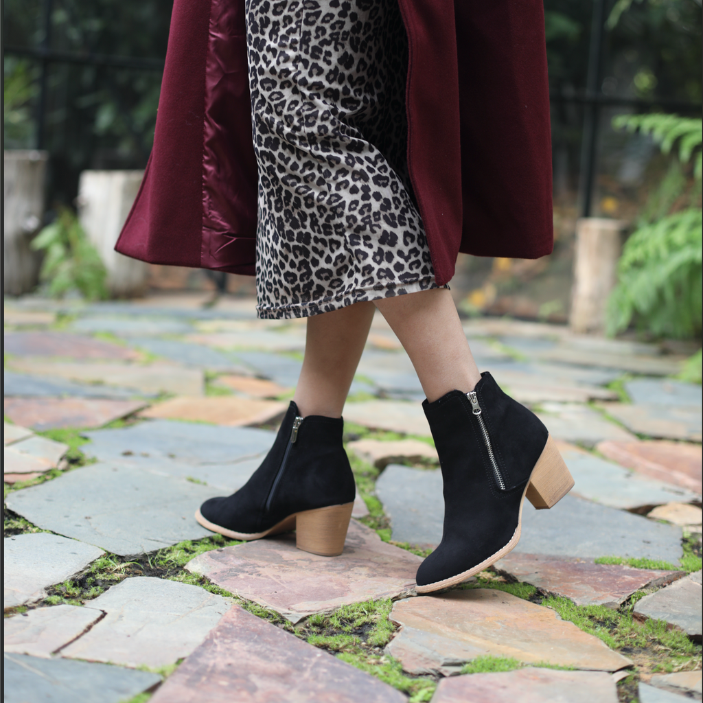 If you’re looking for a minimal pointed toe ankle boot with attitude, look no further than the XENA. This beautifully constructed model features soft microsuede textile that mimics premium suede and owns a fully functional inside zip. The XENA takes inspiration from the western cowboy silhouette and is refined with a wooden stack heel. Finally, this beauty is 100% vegan friendly.