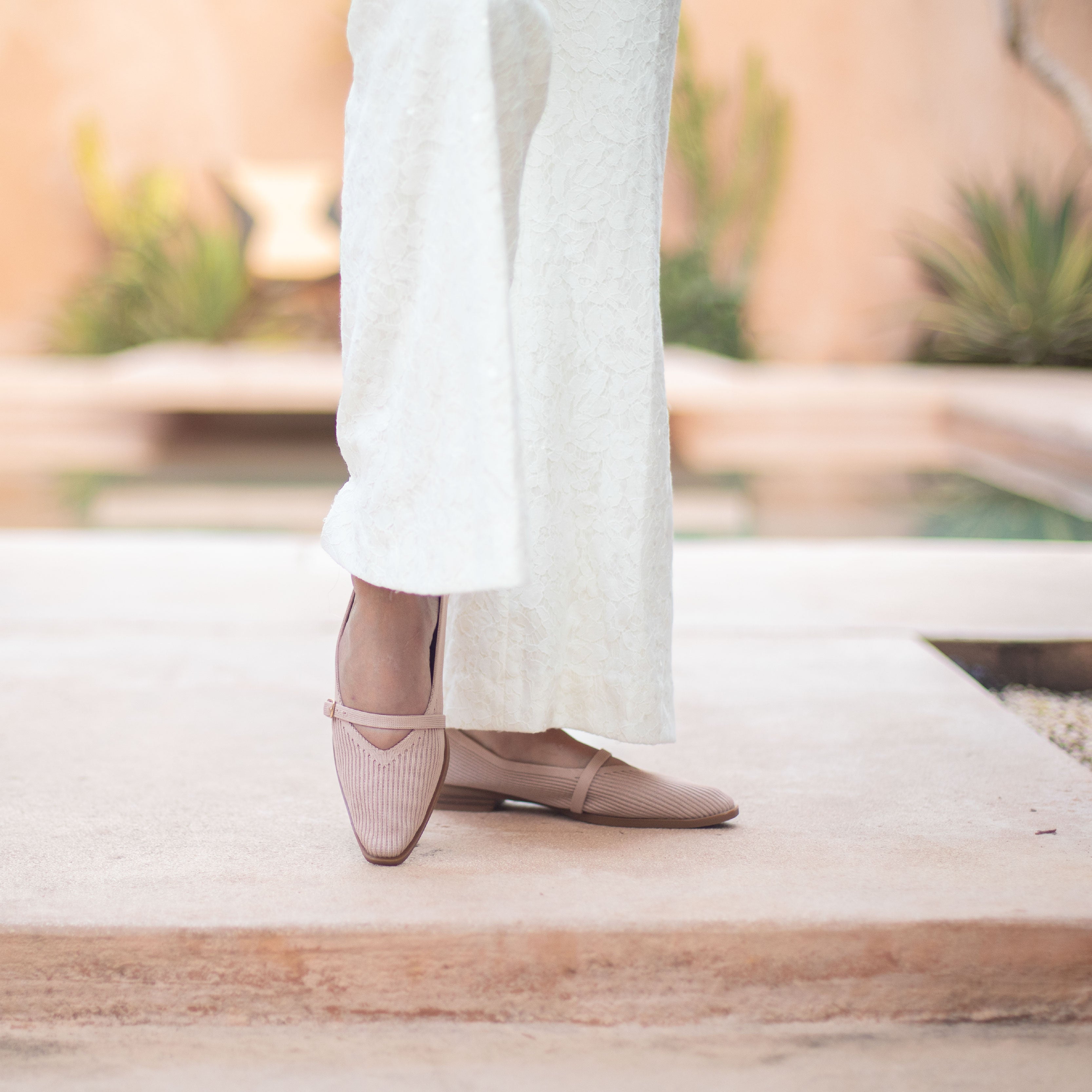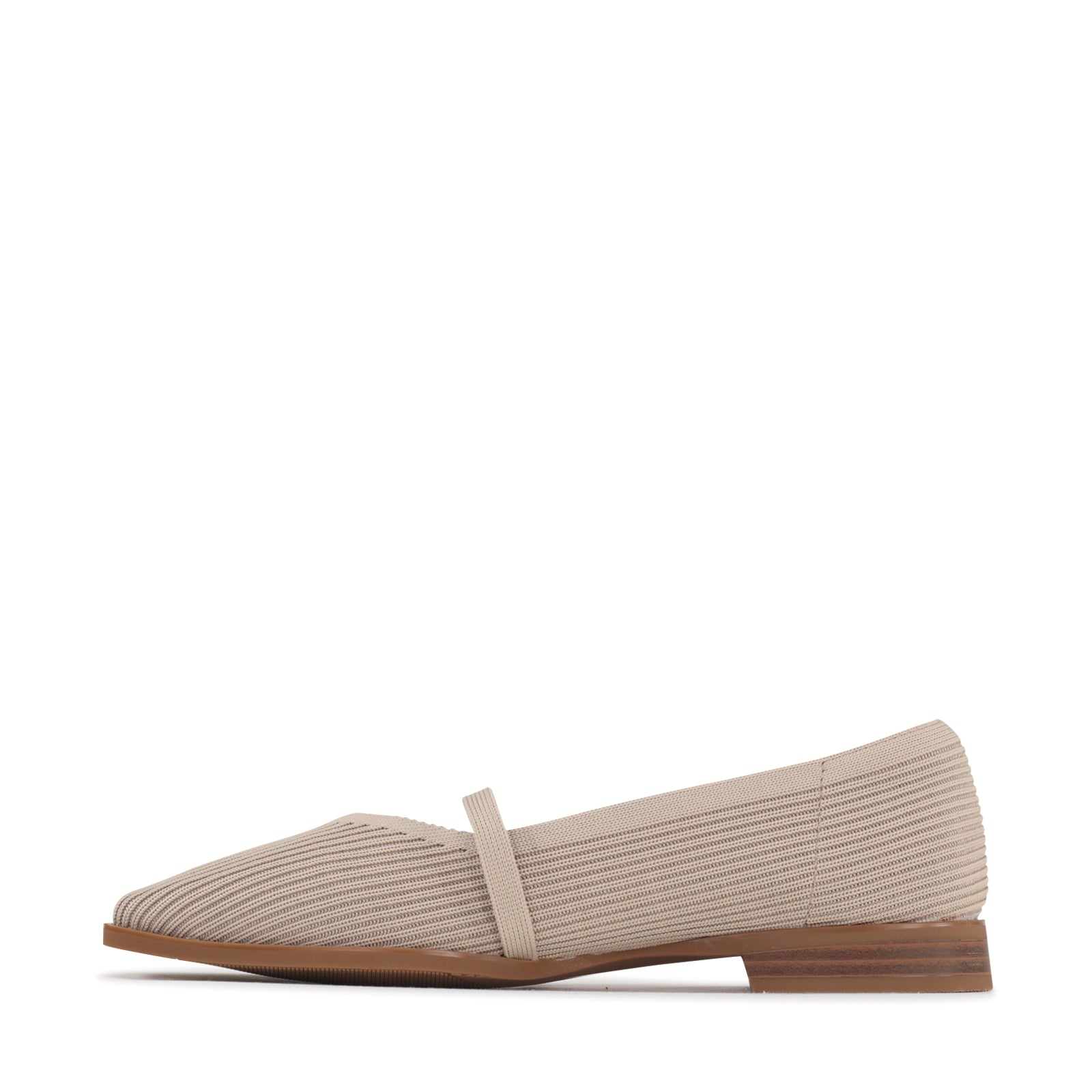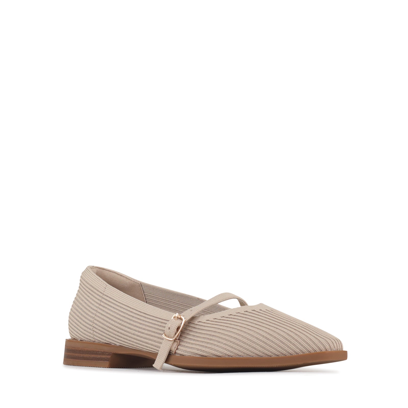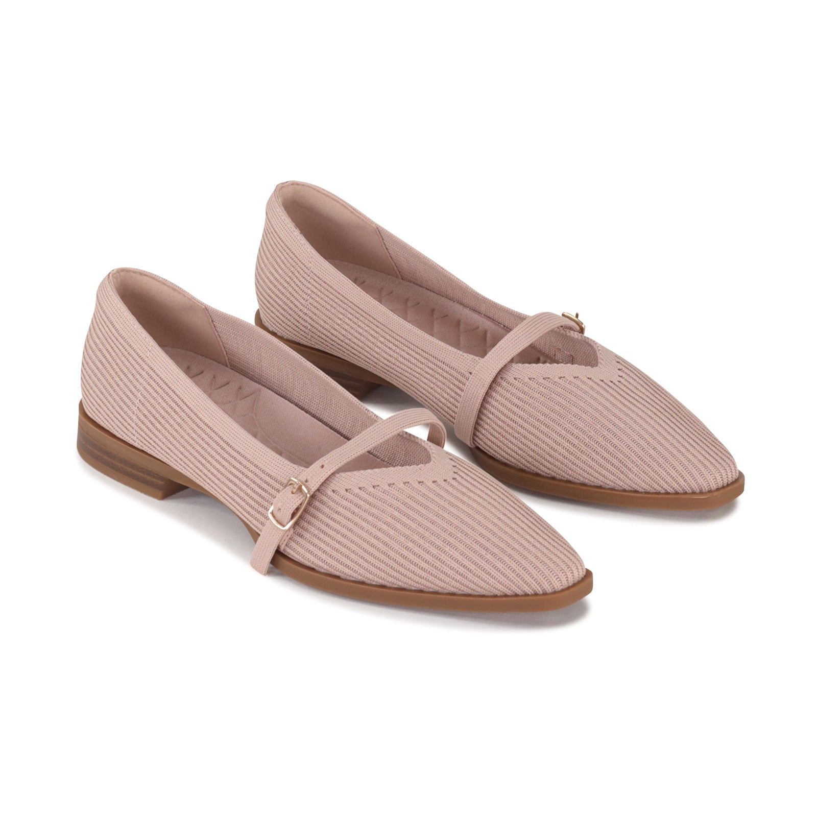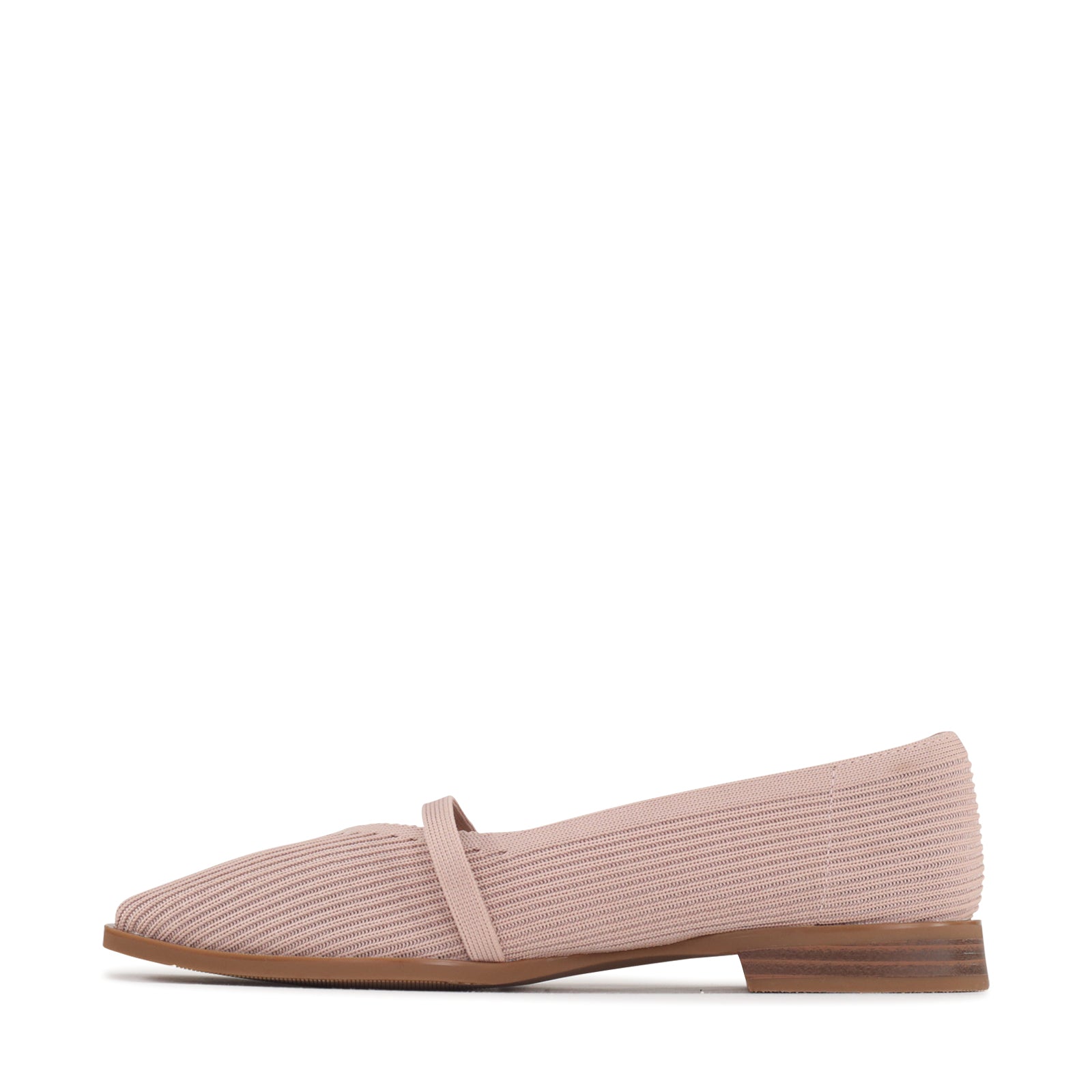 Effortlessly chic with a modern twist, this Mary Jane flat is designed for all-day comfort and timeless style. Crafted from a breathable knit upper in a soft blush hue, it hugs the foot with a flexible, lightweight feel. The adjustable strap with a sleek buckle adds a classic touch while ensuring a secure fit. Finished with a low stacked heel and durable sole, this versatile flat transitions seamlessly from workdays to weekends. Pair it with tailored trousers, dresses, or denim for an easy, elevated look.