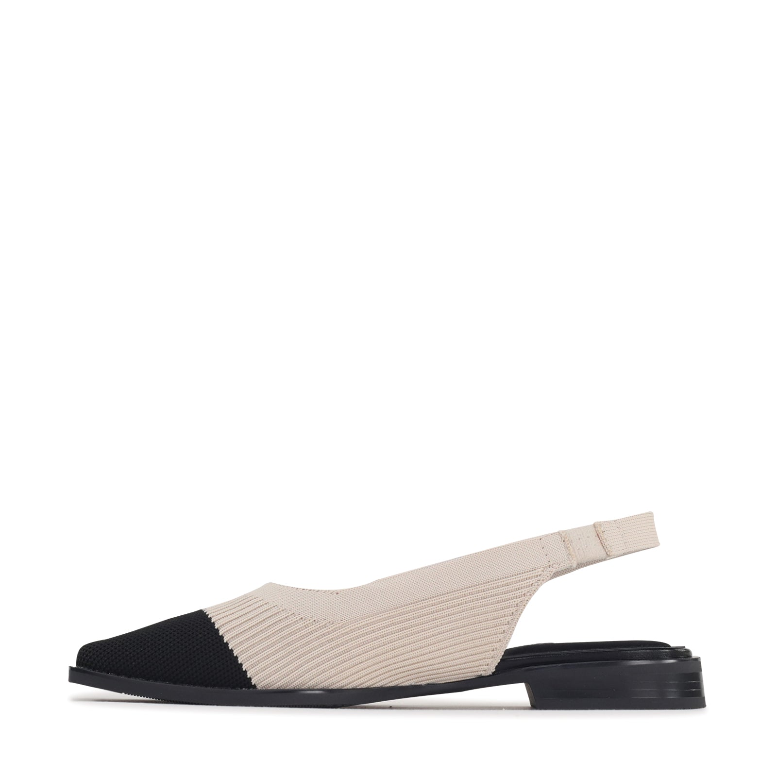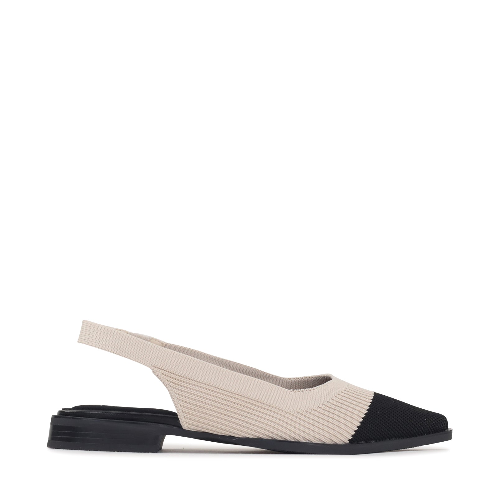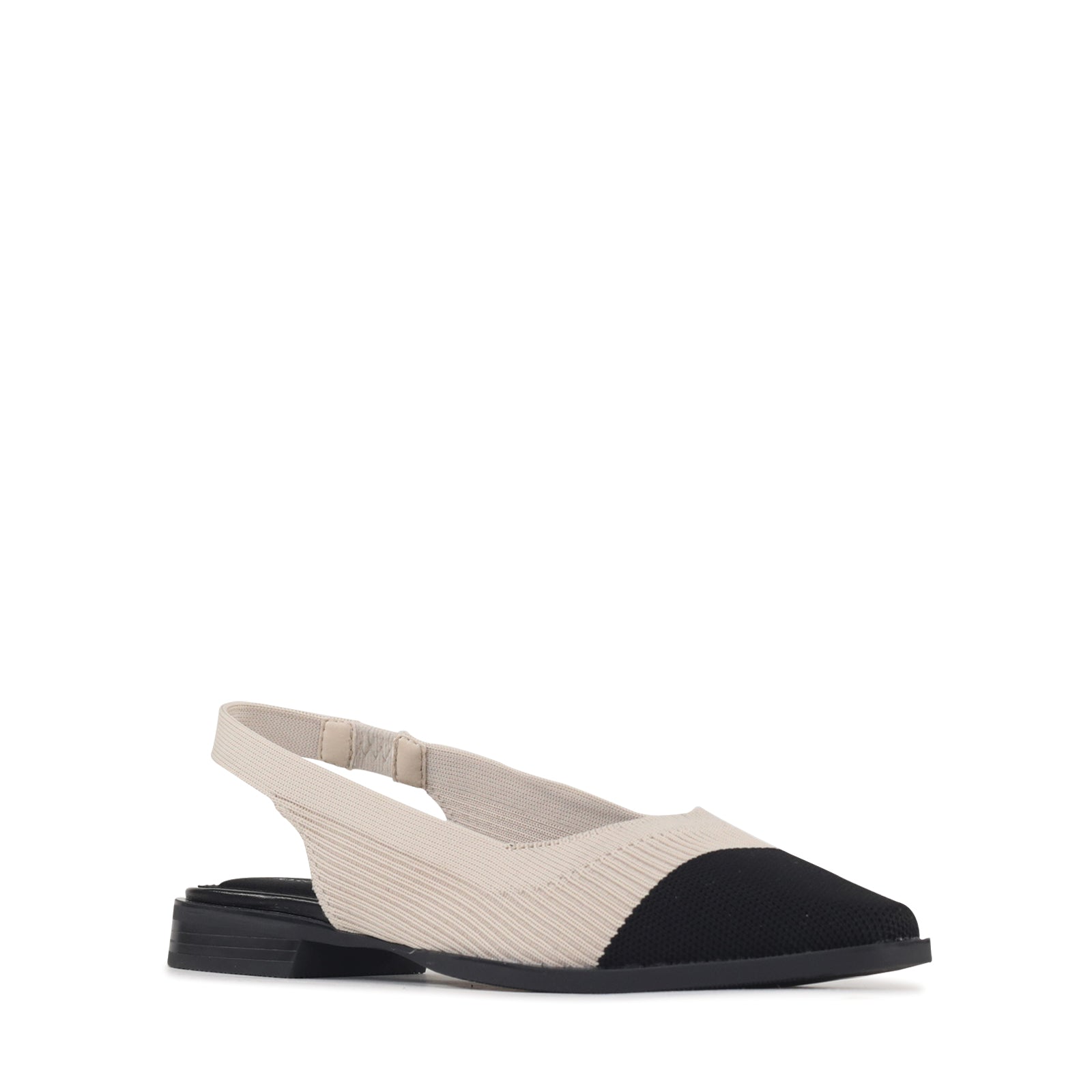 This modern slingback flat blends a clean silhouette with soft, breathable flyknit for all-day comfort. The textured woven upper gently hugs the foot, while the elastic slingback strap offers a flexible, secure fit. Finished with an almond-shaped toe and a low stacked heel, it delivers just the right amount of structure easy enough for everyday wear, refined enough for work or weekends out.