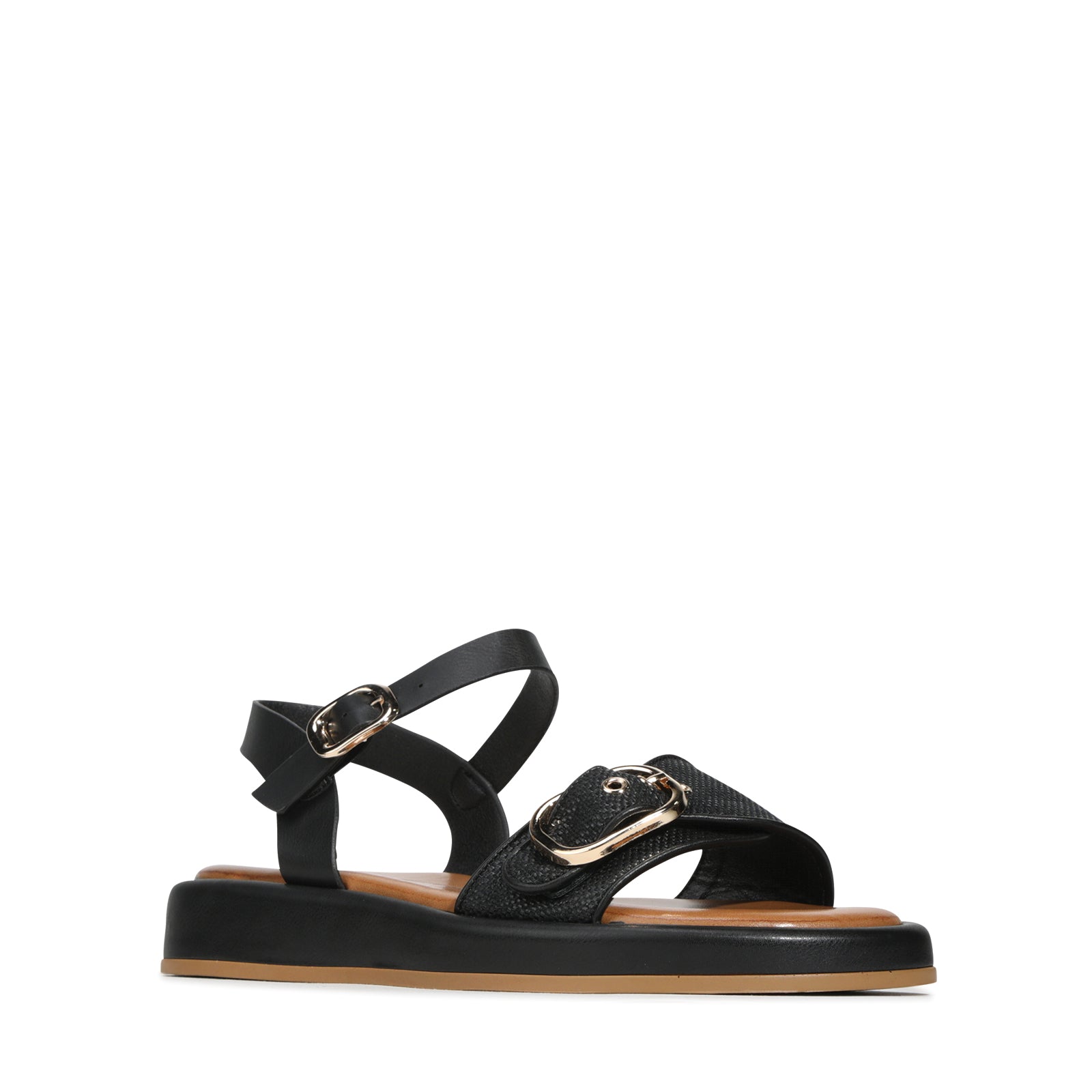 Showcase your flair with a two-tone raffia front strap, bringing a chic, natural-textured accent to your look.